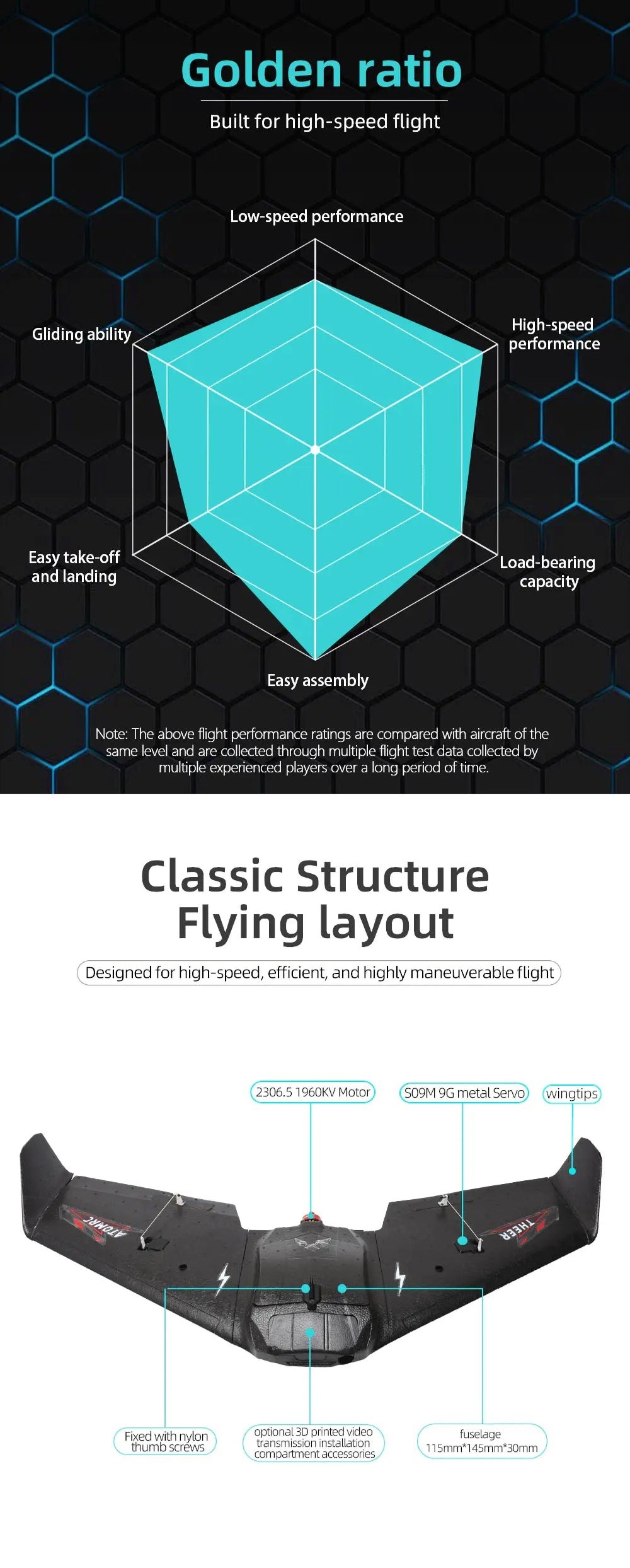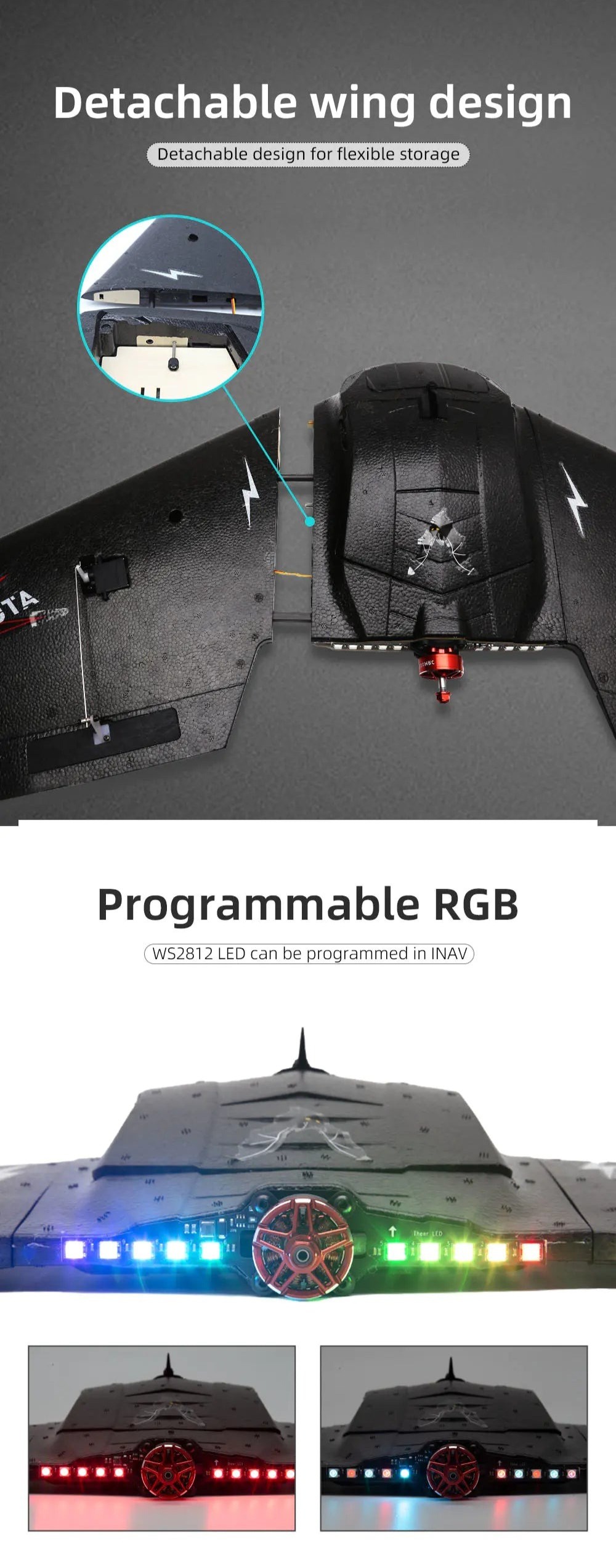 The AtomRC Theer Bat Fixed-wing Aircraft delivers high speed, efficiency, and razor sharp maneuverability through a classic EPP structure built to resist crashes and simplify repairs. Factory pre assembled with tuned INAV flight control, screw fixed components, and smart layout, it lets pilots install VTX, camera, and receiver quickly, achieving a reliable near ready to fly FPV platform, designed for high speed racing and confident control with durable EPP construction.