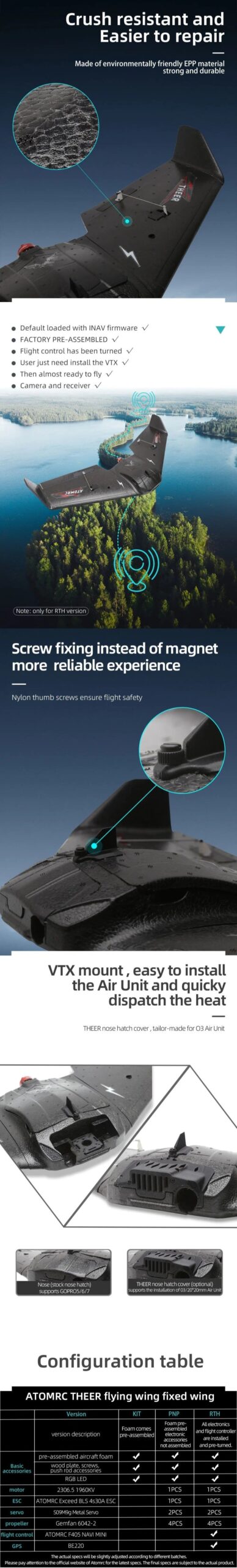 - 1 x AtomRC Theer Bat Fixed-wing Aircraft