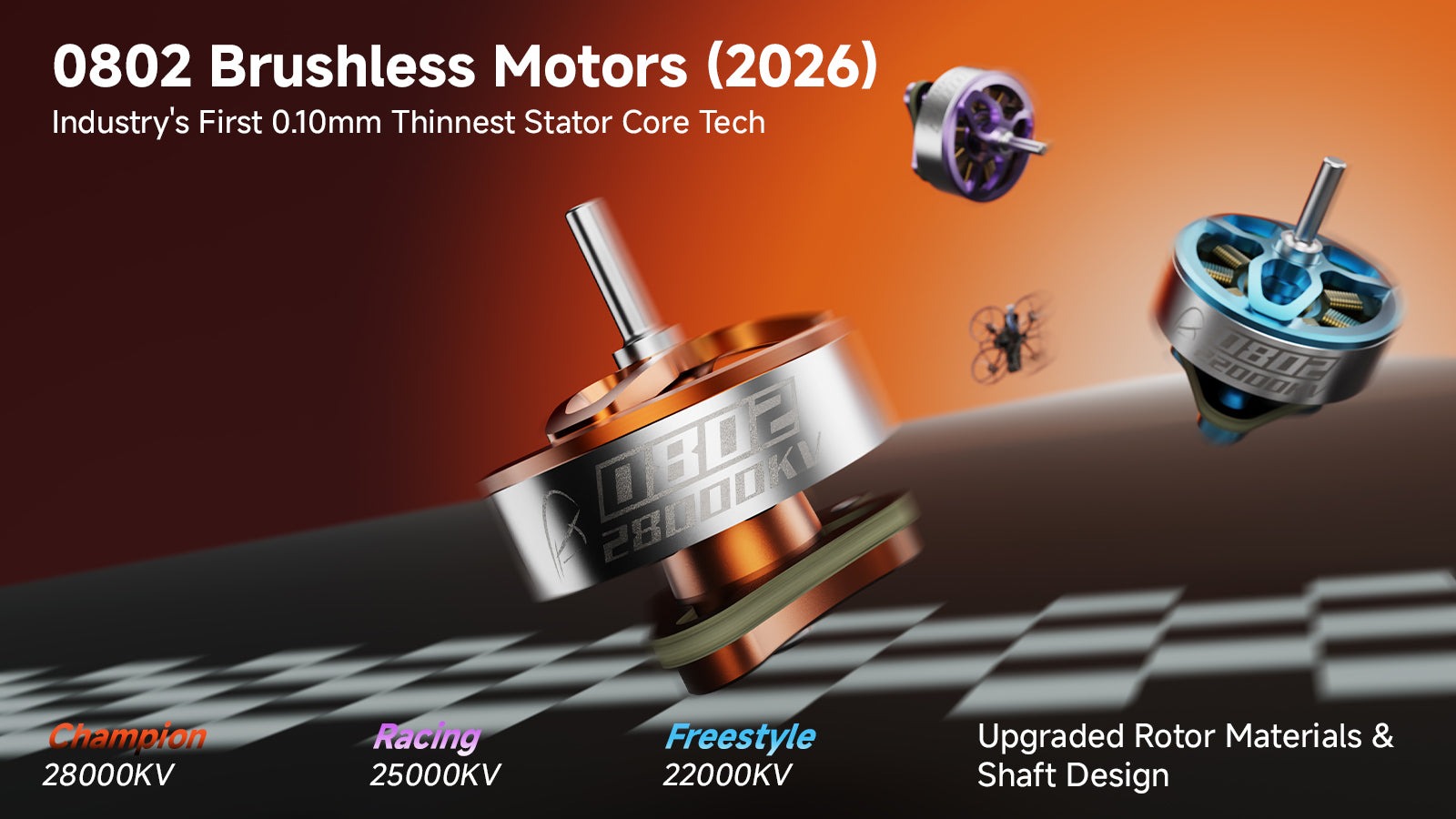 - 4 × 0802 Brushless Motors (Champion / Racing / Freestyle)
