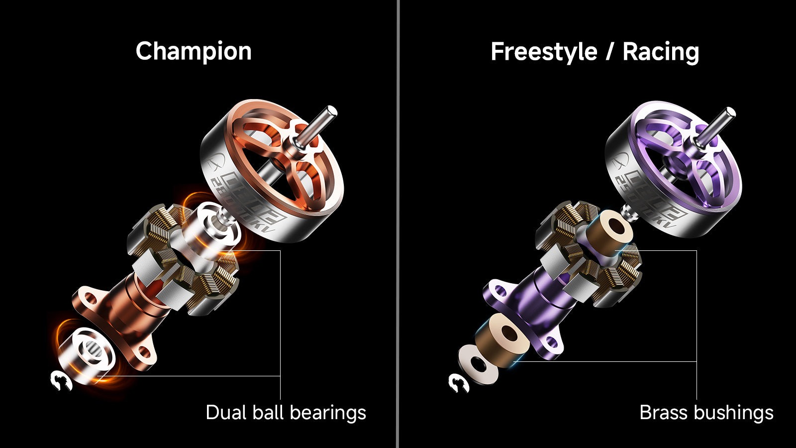 - Champion (28000KV): Combines maximum power and responsiveness with durable dual-ball bearings for professional racing.
