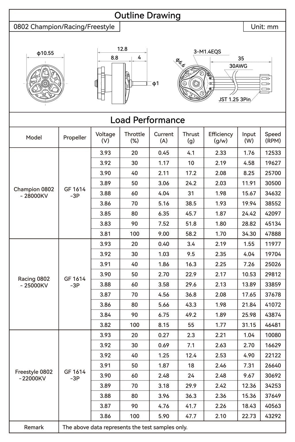- KV Options: 28000KV (Champion) / 25000KV (Racing) / 22000KV (Freestyle)