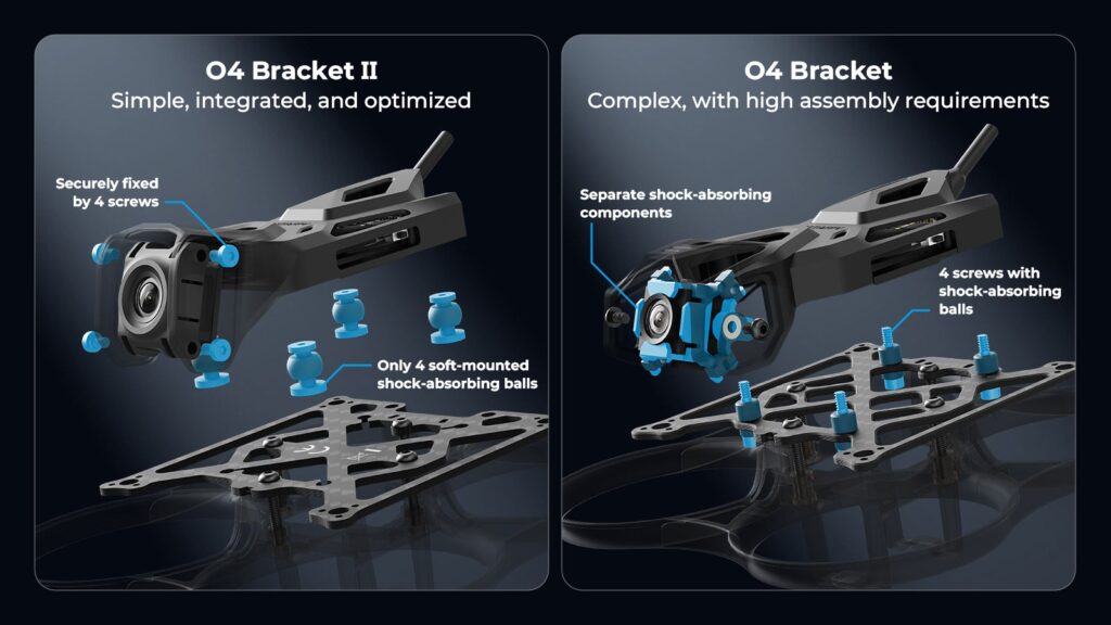 - O4 Air Unit Bracket II: The integrated bracket with 4 shock-absorbing balls eliminate jello for butter-smooth video.