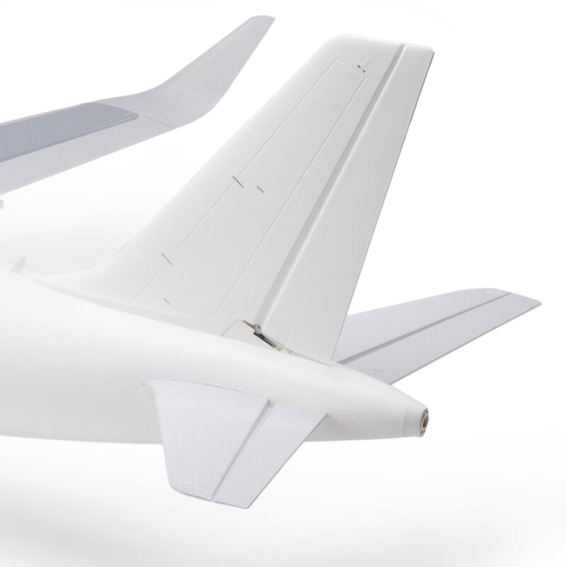 No glue is required for assembly and you can have the A320neo Twin 64mm EDF ready to fly in less time than other airliner models! The two-piece wing with hands-free connections is easy to install or remove quickly with thumbscrews for more convenient storage and transport. And the separate horizontal and vertical stabilizers simply snap into place securely without the need to use any tools or fasteners.