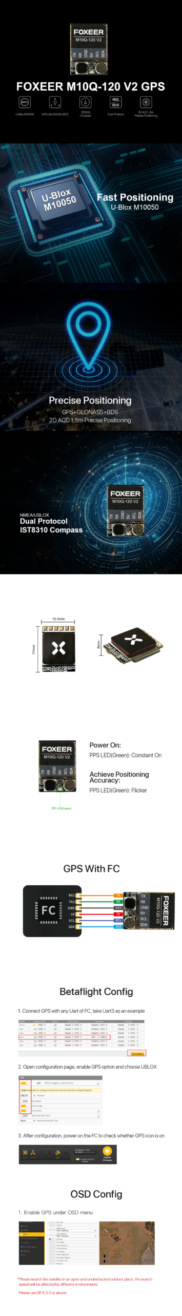 The Foxeer M10Q 120 V2 GPS delivers lightning-fast satellite acquisition and rock-solid positioning with its advanced 10th generation M10 chip, ensuring ultra-precise navigation for demanding FPV pilots and long-range missions. Engineered with multi-constellation support, high sensitivity, and compact durability, it guarantees reliable performance, accurate tracking, and seamless integration for consistent flight confidence in any outdoor environment.