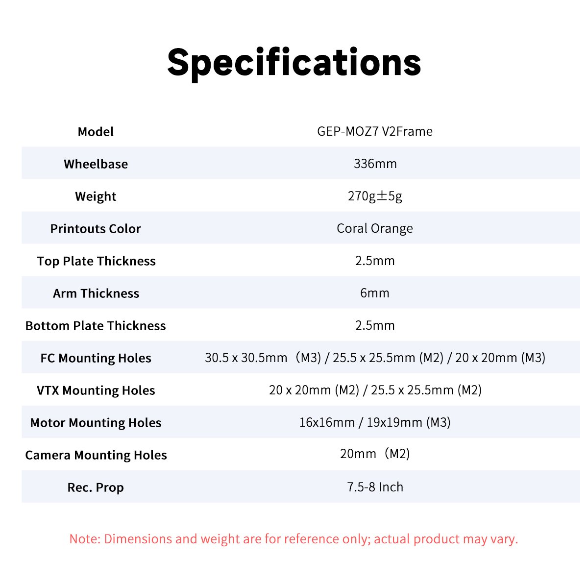 - 1 x GEP-MOZ7 V2 Frame Kit