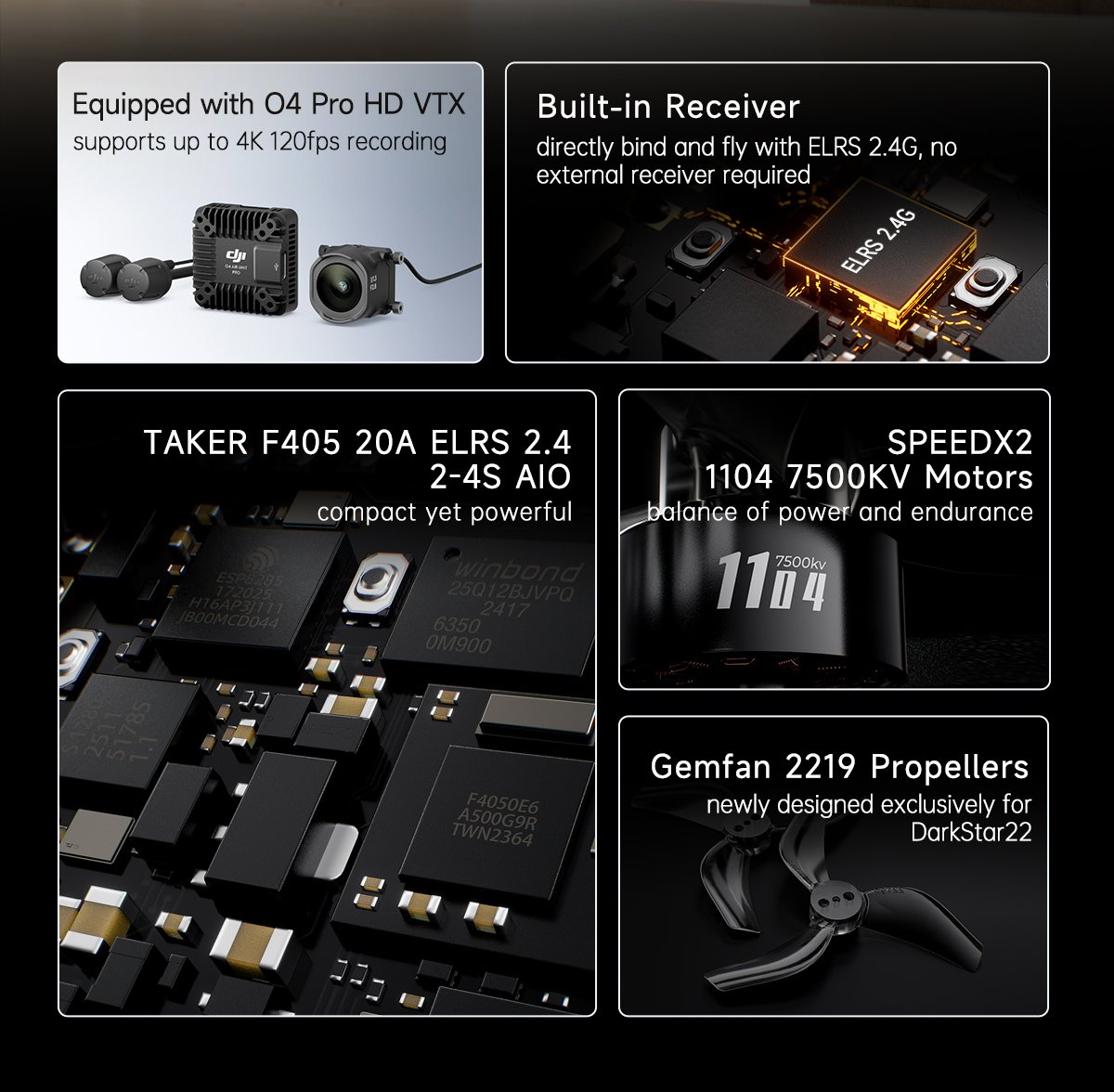 The GEPRC DarkStar22 O4 Pro CineWhoop Quadcopter packs cinematic power into a compact frame, combining DJI O4 Pro ultra low latency HD transmission, stabilized flight, and impressive durability for confident indoor and outdoor flying. With an integrated ELRS flight controller, efficient SPEEDX2 motors, five point damping, and GPS ready design, it delivers smooth 4K video, strong punch, excellent endurance, and beginner friendly safety in every mission both indoors outdoors safely.