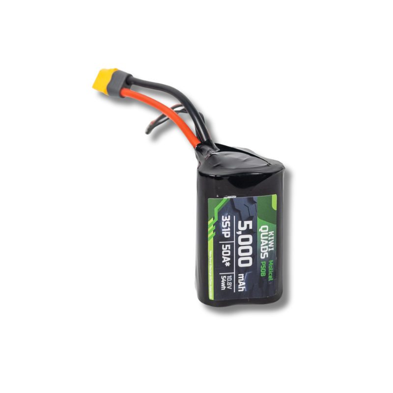 The KiwiQuads 21700 P50B 3S1P 5000mAh Li-Ion Pack delivers unmatched endurance and reliable power for demanding FPV flights. Built with premium Molicel P50B cells and a precise 3S1P configuration, it offers incredible capacity and consistent voltage output for longer, smoother runs. Whether you’re racing, cruising, or filming, this battery ensures maximum performance, stability, and confidence with every charge—making it the powerhouse your setup deserves.