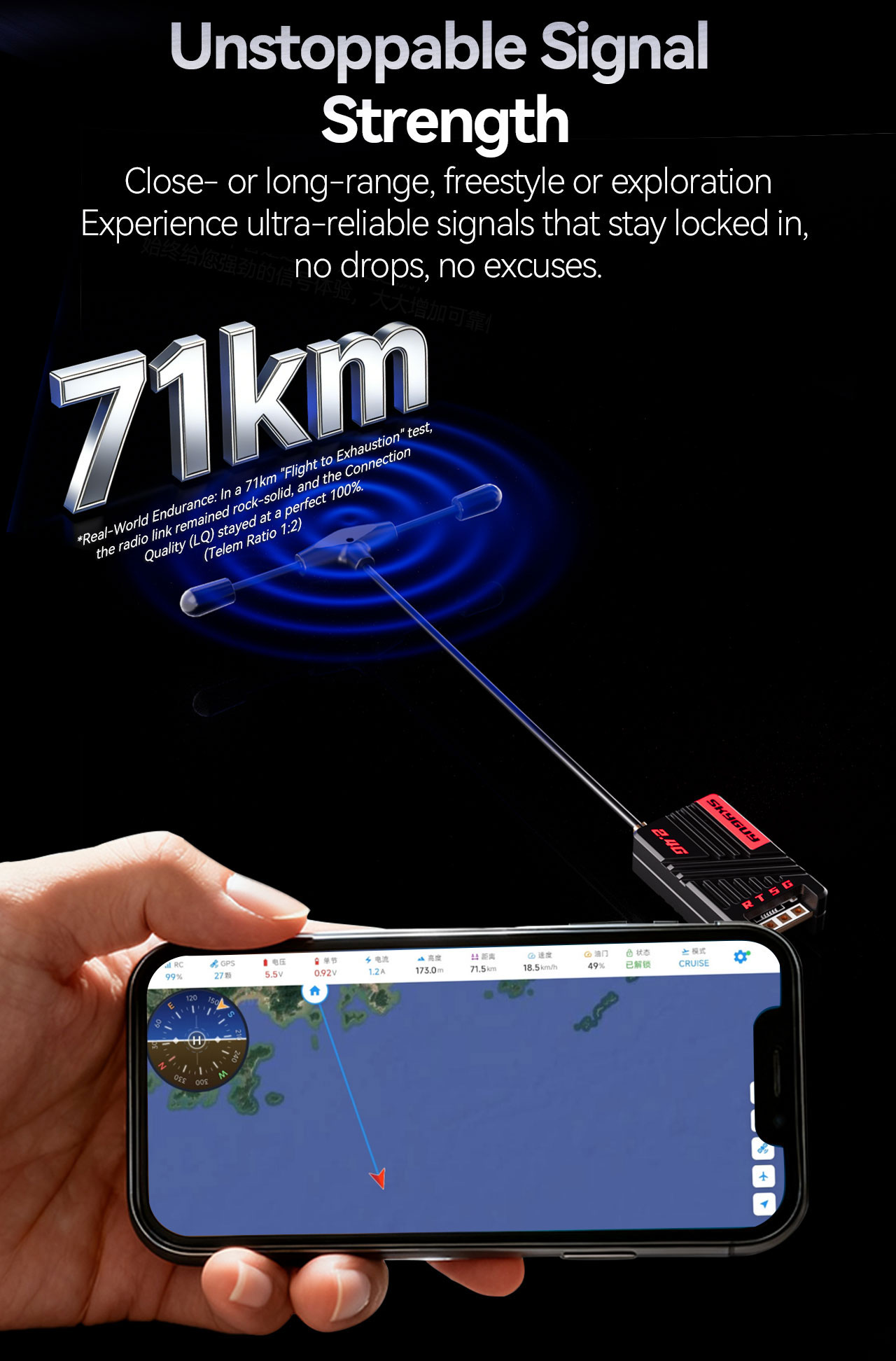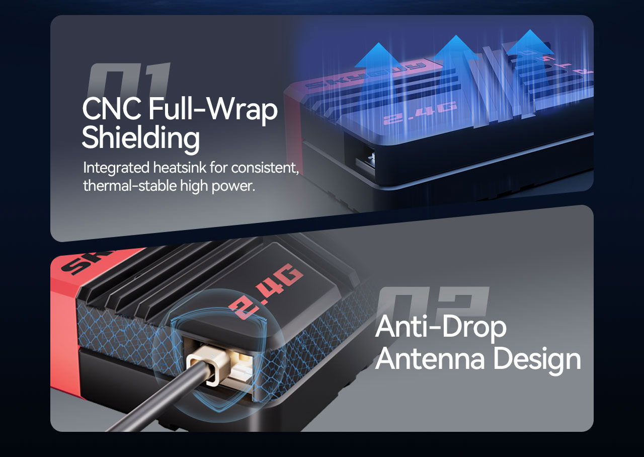 The SkyGuy Max 2.4G ExpressLRS ELRS Receiver – Big Antenna delivers ultra reliable long range control with powerful SX1280 and ESP32-C3 performance, ensuring stable links, fast response, and superior signal penetration for demanding FPV pilots everywhere. Featuring versatile power options up to 1000mW, lightweight compact design, and optimized T-antenna, it maximizes connectivity, enhances flight confidence, and simplifies setup with intuitive LED indicators and convenient WiFi firmware updates for modern pilots.