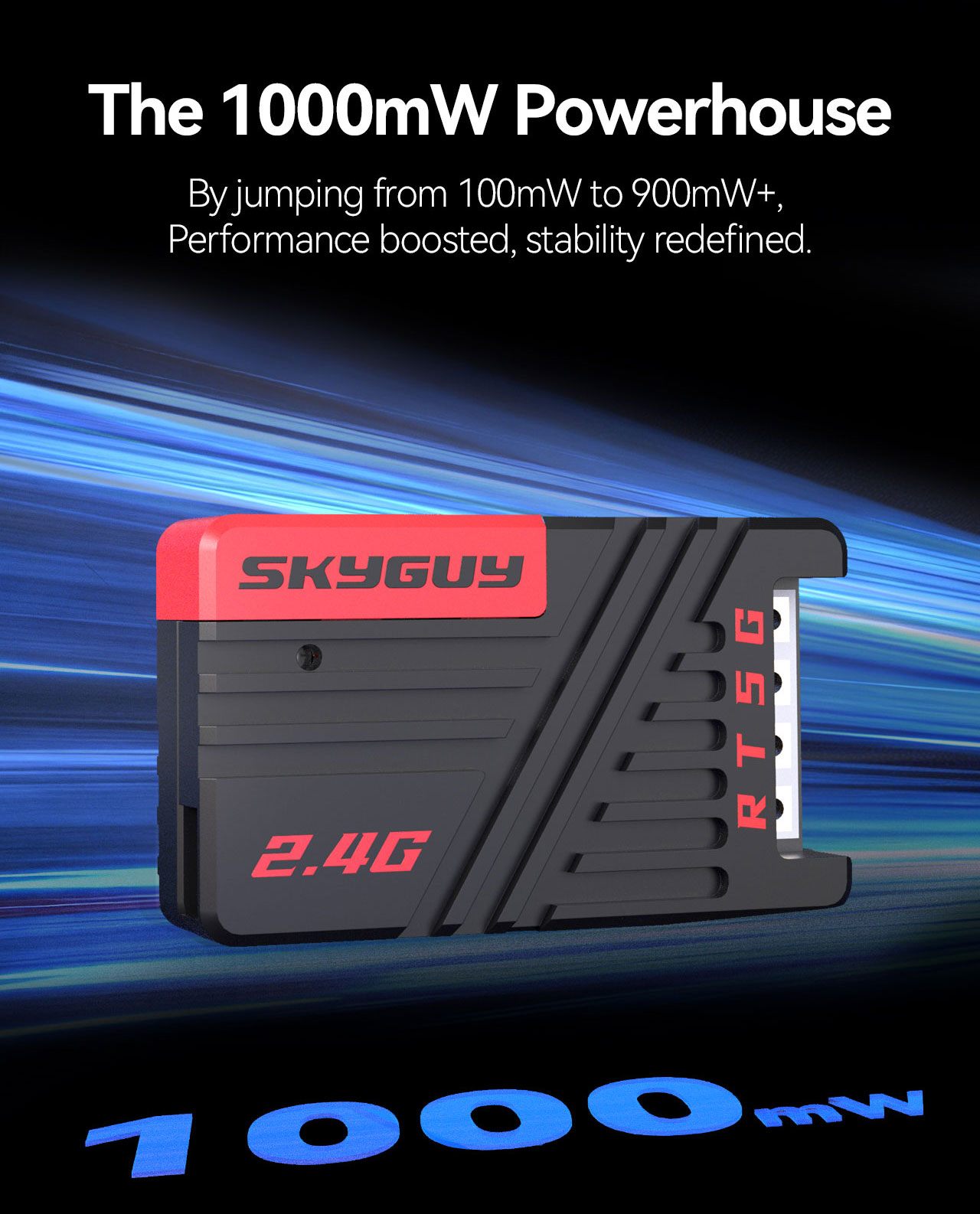 - Power Options: 25mW / 50mW / 100mW / 250mW / 500mW / 1000mW