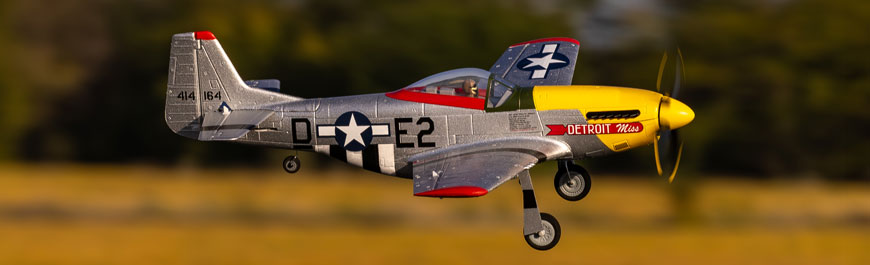 The E-flite® UMX™ P-51D Mustang is a warbird version of the popular UMX P-51D Voodoo racer that’s finished in the historic “Detroit Miss” trim scheme making it the most affordable, convenient, and easiest-to-fly model of the iconic WWII fighter yet!